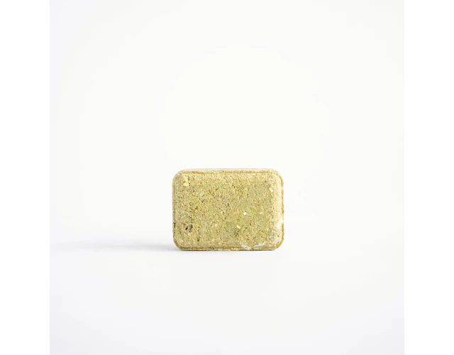 -Frotar el shampoo sólido con las manos mojadas para crear espuma.